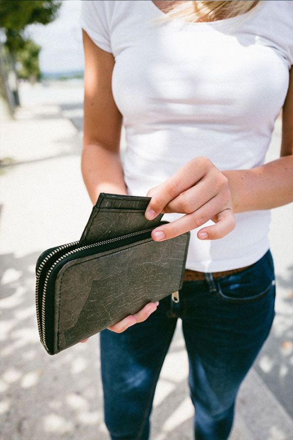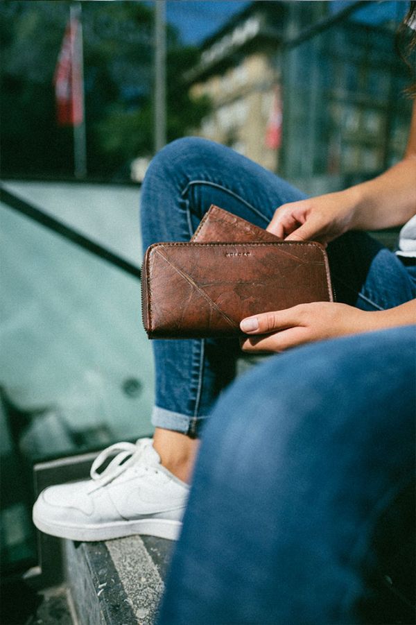 Wallets, pouches and bags made of vegan leaf leather. Beleafs products are sustainable, fairly produced and also extremely durable.