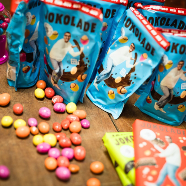 With JOKOLADE, we want to provide enjoyment that is not economically detrimental to those who supply our ingredients. Our chocolate should be fun (for everyone). That's why we source the majority of our ingredients from Fairtrade sources. In addition, our cocoa comes from Tony's Open Chain, by far the best system for preventing child labor and modern slavery on the plantations. Our range currently includes our chocolate bars, bars and colorful Peanuts. However, we are constantly working on new, innovative products. Always with 100% enjoyment and a good dose of fun!